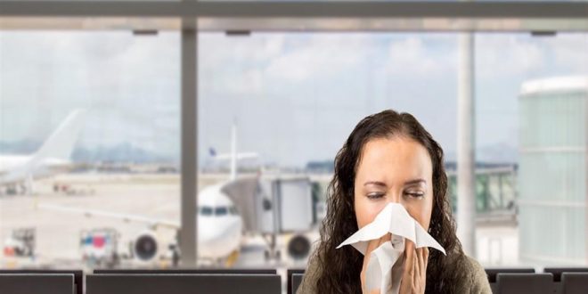 وبخلاف غرف الفنادق، تعتبر الطائرات من الأماكن التي تتراكم بها البكتيريا والجراثيم، خاصةً على أسطح طاولات الطعام ومقابض الذراعين وأجهزة التنفس، وأثبتت بعض الدراسات أن ملامستها قد يسهل من الإصابة بمرض السعال بين المسافرين.
