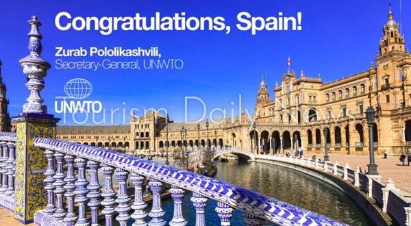 هنأت منظمة السياحة العالمية إسبانيا بحصولها على لقب الوجهة السياحية الأكثر تنافسية فى العالم وكتب زوراب بولوليكاشفيلي أمين عام منظّمة السياحة العالمية مهنئاً دولة اسبانيا لحصولها على هذا اللقب , وقال زوراب قى تدوينة له عبر موقع التواصل الاجتماعى “تويتر” أن هناك بنية تحتية جيدة وثقافة ثرية وموارد طبيعية مُدارة بشكل جيد موضحاً أن كل هذه الأمور تساعد على جعل إسبانيا الوجهة السياحية الأكثر تنافسية في العالم ,يذكر أن السياحة الإسبانية حققت 53 مليار يورو في 7 أشهر