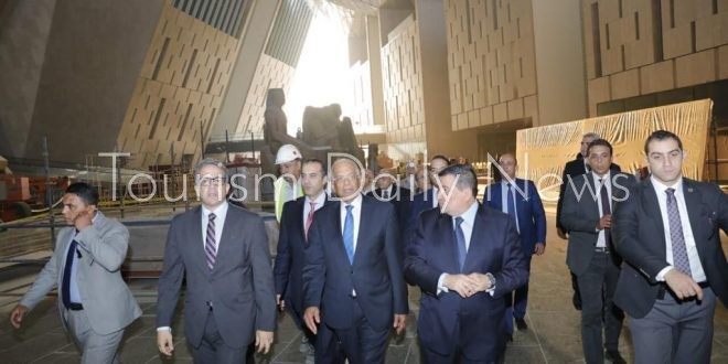 كما زاروا الموقع الإنشائي للمتحف حيث تفقدوا منطقة البهو العظيم والتي يعرض بها تمثال الملك رمسيس الثاني وعمود الملك مرنبتاح بالإضافة إلى الدرج العظيم و القاعات الخاصة بكنوز الملك توت عنخ آمون.