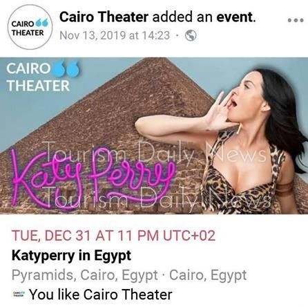 ويتولي تنظيم الحفل شركة “Cairo Theater” وكانت قد كتبت علي صفحتها الرسمية الشهر المنقضي أنه قريبا، سيتم الإعلان عن التفاصيل الخاصة بحفل الفنانة الأمريكية كاتي بيري في مصر، مؤكدة أنها غير مسئولة عن أي أخبار تصدر خارج هذه الصفحة.