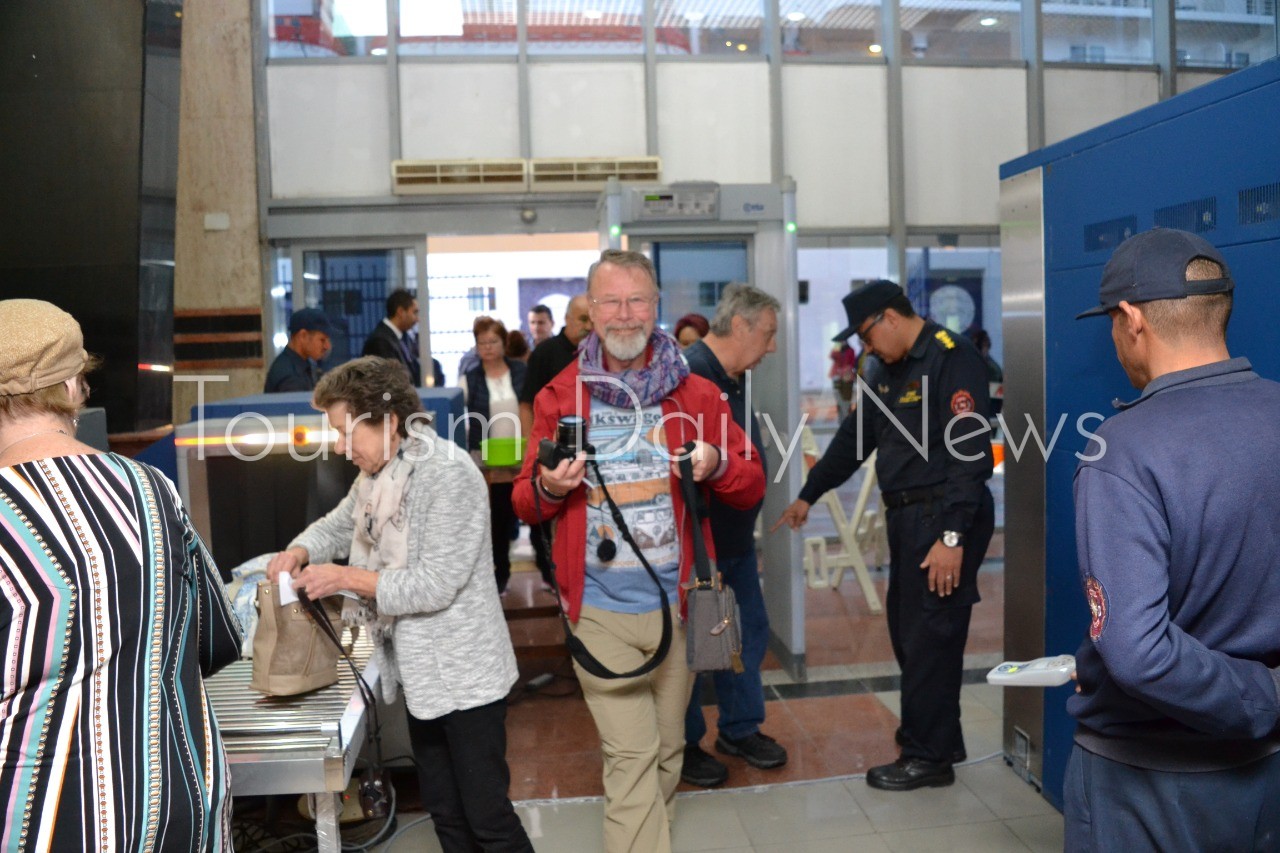 وقد وجه الربان طارق شاهين المختصين بالميناء بالتواجد بمحطة الركاب منذ وصول السفينة لمحطة الركاب ، كما نسق الربان شاهين مع اللواء عزت عبدالقادر مدير الإدارة العامة لشرطة الميناء لرفع درجة الإستعداد والجاهزية لاستقبال السفينة والسياح ، وظهور مستقبلي السياح والخدمات الأمنية والشرطية بالمظهر اللائق بوطننا الحبيب ، والتأكد من نزول وتفويج السائحين وخروجهم من الميناء بيسر وأمان .