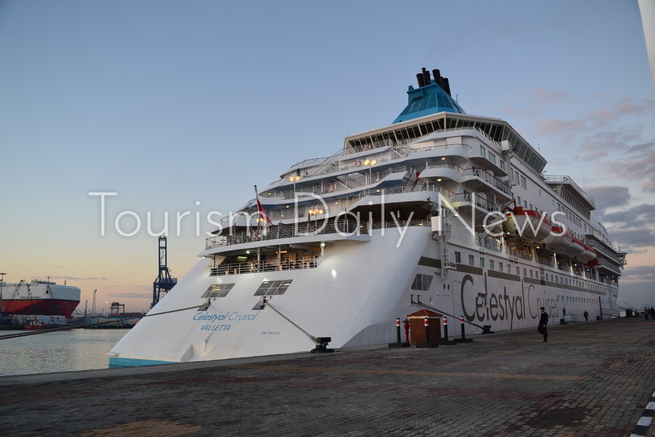 استقبل الربان طارق شاهين رئيس مجلس إدارة هيئة ميناء الإسكندرية يرافقه قيادات الميناء والمختصين بالسفينة السياحية المالطية celestyel crystal القادمة من اليونان وعلي متنها 800 سائح من جنسيات مختلفة بالإضافة إلى الطاقم المكون من 401 فرد .