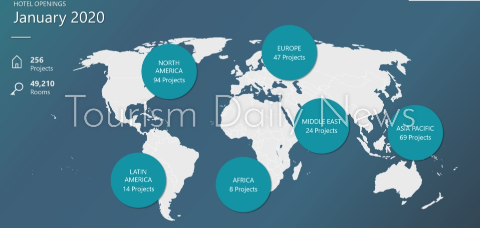 كشف تقرير صادر عن شركة “توب هوتيل كونستركشن”، المتخصصة فى أبحاث سوق الضيافة، عن افتتاح نحو 256 فندقا جديدا بطاقة إيوائية نحو 50 ألف غرفة فى جميع أنحاء العالم خلال شهر يناير الجارى.
