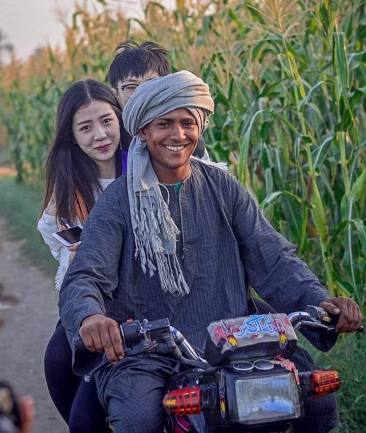 مع إشراقة صباح يوم جديد، ارتدى جلبابه، وعقد عمامته، وانطلق بدراجته البخارية، بحثا عن خوض تجربة فريدة مع مجموعة سياحية تزور الأقصر؛ فماذا فعل مع سائحين آسيويين استوقفاه؟.. الكثير، فقد تبسم.