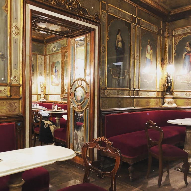 يشتهر المقهي في العالم كله بفن العمارة علي طراز فن الآرت “Art Nouveau” المعماري المبدع ، وكان يذهب إليه كثير من فناني العالم منهم “الأديب الألماني جوته ، الروائي البريطاني تشارلز ديكنز ، الشاعر البريطاني اللورد بايرون”.