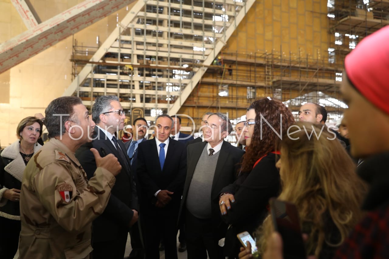 وتضمنت الزيارة جولة بموقع المتحف والبهو حيث يقف تمثال الملك رمسيس الثاني والدرج العظيم وقاعات العرض الخاصة بمجموعة الملك الشاب توت عنخ آمون وموقع ميدان المسلة المعلقة.