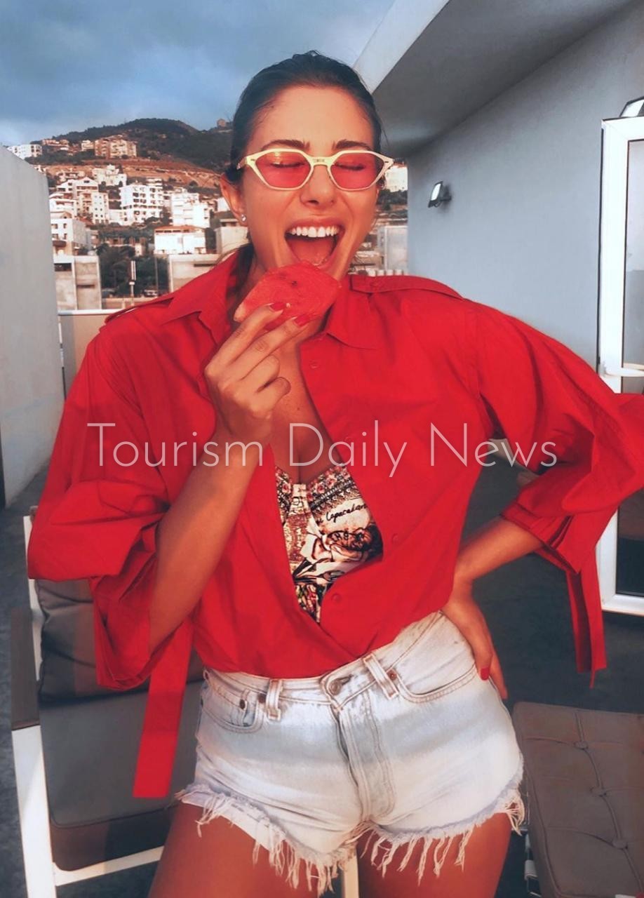 وارتدتْ في افتتاح أحد الافلام المصرية فستانًا قصيرًا أحمر مدمجًا بقماش الدانتيل وبقَصَّة مموَّجة في الأسفل، وكان من توقيع المصممة ياسمين حوا، وظهرت في إطلالة بسيطة ببنطال أحمر طويل مزين بأزرار في منطقة البطن، ونسَّقَتْه مع بلوزة بيضاء مكشوفة الأكتاف.