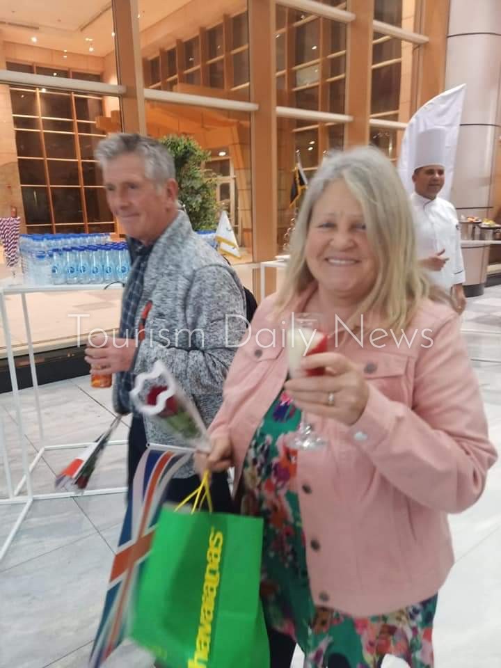 واستقبل فريق من العلاقات العامة بالشركة المصرية للمطارات الركاب بالورود وتوزيع الهدايا التذكارية عليهم وبعض الكتيبات الخاصة بأهم المعالم السياحية بمدينة شرم الشيخ، فضلا عن عزف بعض الأنغام الموسيقية، وتقديم فقرات ترفيهية من الفلكلور الشعبي في صالة الوصول الدولية.