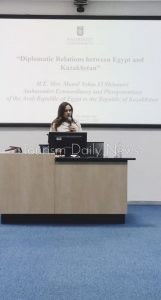 كما ألقت السفيرة المصرية، محاضرة أمام طلبة الجامعة تناولت فيها العلاقات الثنائية والتعاون المشترك بين البلدين.