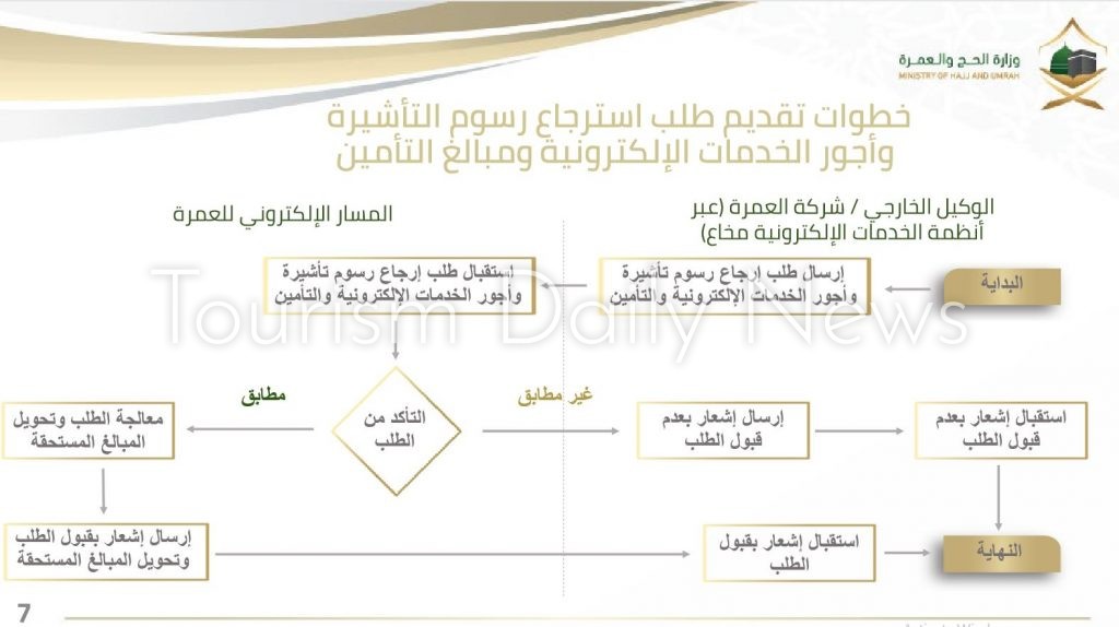 وكالات : كشفت وزارة الحج والعمرة السعودية ، عن وجود آلية إلكترونية لطلب استرجاع رسوم التأشيرات وأجور الخدمات عن طريق وكلاء العمرة في بلدان المعتمرين فقط وذلك بعد قرار تعليق الدخول إلى المملكة بشكل مؤقت احترازيًا .