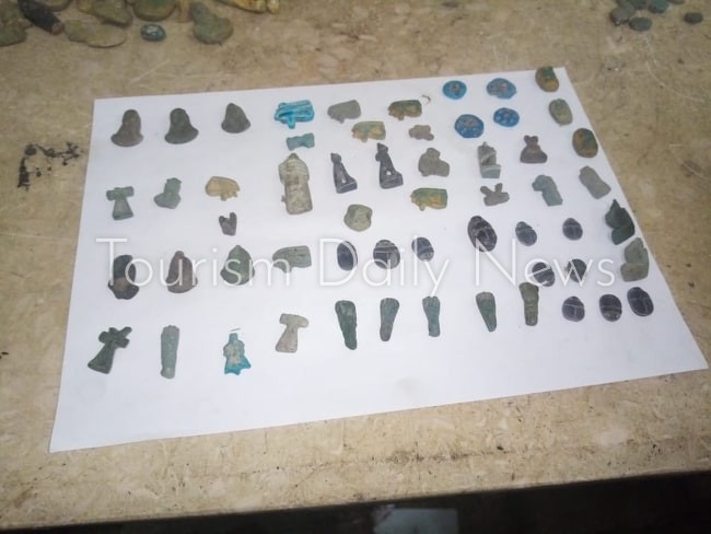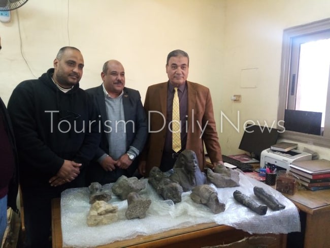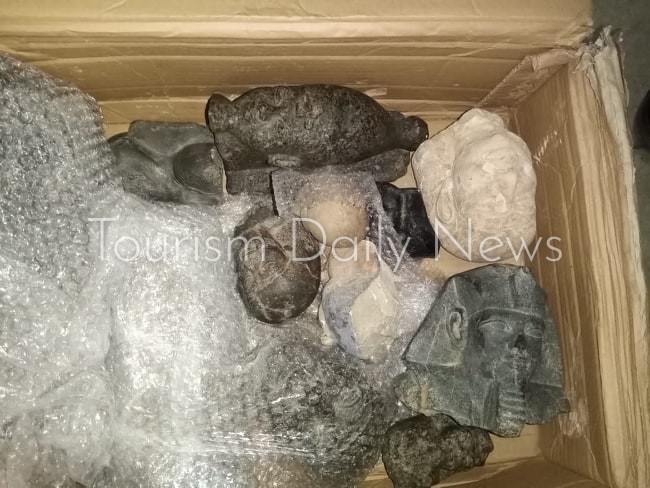 وبالمعاينة قررت اللجنة بعد مناظرة الأصناف إستدعاء لجنة عليا من الإداره المركزية للمنافذ الأثرية بالقاهره بحضور رضا عثمان مدير جمرك الصادر والتى أفادت بوجود ٩ تماثيل أثرية و ١٢ قطعة أثرية وعدد كبير من الجعارين والتمائم والأواني معظمها أثرية وترجع إلي فترات مختلفة من التاريخ المصري القديم وخاصة الدولة الحديثة والعصور المتأخرة .