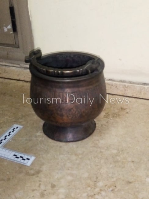 وبالمعاينة الفعلية تبين للجنة الجمركية وجود تماثيل من الجرانيت وأواني نحاسيه بها رسومات إسلاميه وجعارين وتمائم قديمة إشتبهت اللجنة فى أثريتها .