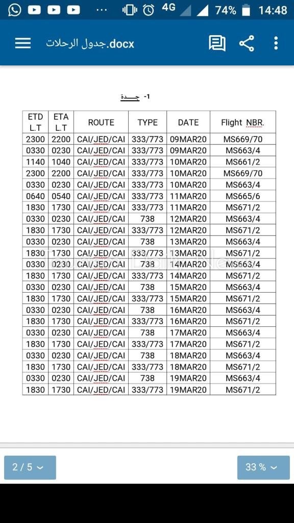 كتبت – ميرفت رشاد : حصل ” توريزم ديلى نيوز” على نسخة من جداول رحلات شركة مصر للطيران والخطوط السعودية لنقل المعتمرين العالقين بالمملكة العربية السعوية والبالغ عددهم نحو 7000 معتمر، بعد وقف الرحلات بين البلدين للحد من انتشار فيروس كورونا