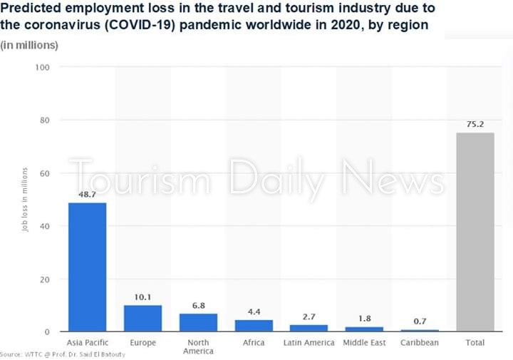 وقال الدكتور سعيد البطوطي، أستاذ اقتصاديات السياحة بجامعة فرانكفورت بألمانيا وعضو المجلس الاقتصادي لمنظمة السياحة العالمية، أن المنطقة التي من المفترض أن تشهد أكبر خسارة هي منطقة آسيا والمحيط الهادئ، حيث فقدت ما يقرب من 48,7 مليون وظيفة.