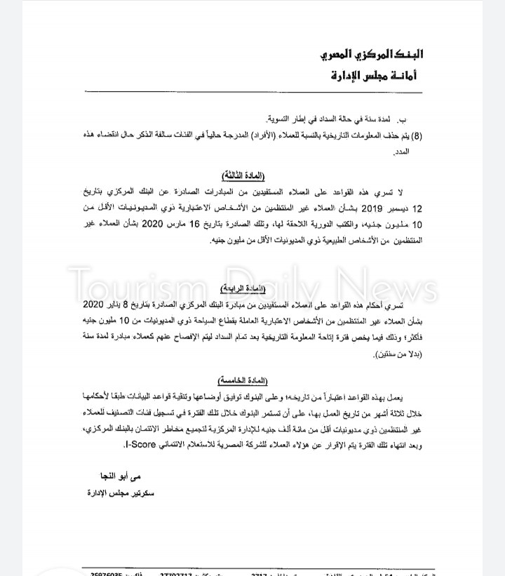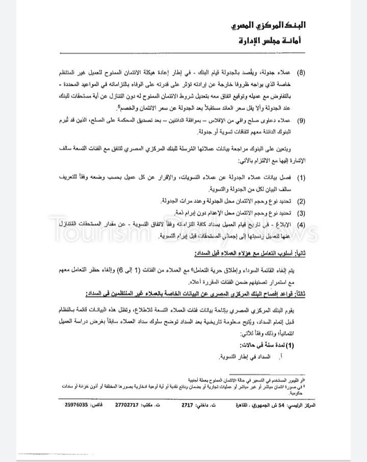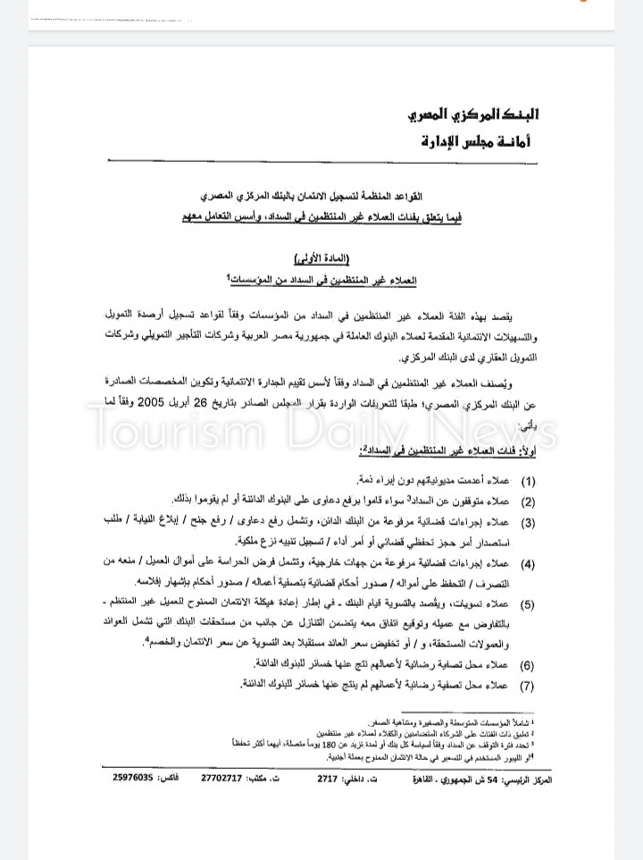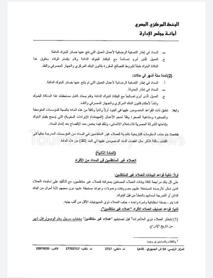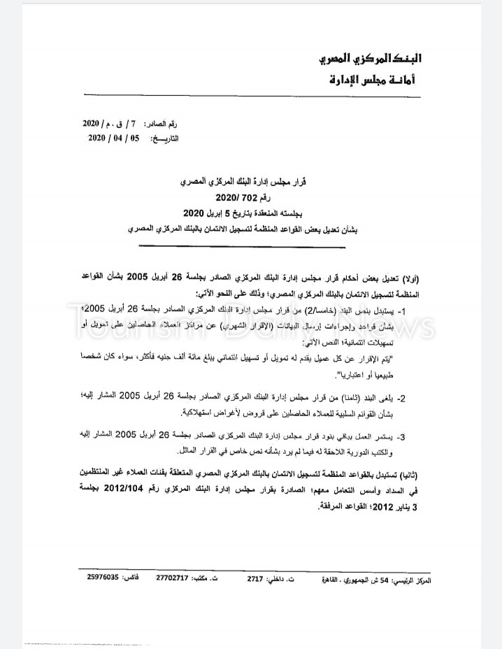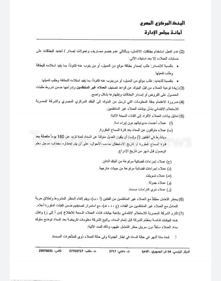 وأضاف أنه سيجري منح البنوك مدة ثلاثة أشهر من تاريخ صدور القرار لتوفيق الأوضاع، ليتم خلالها تنقية قواعد بيانات العملاء المدرجة بنظام تسجيل الائتمان بالبنك المركزي والشركة المصرية للاستعلام الائتماني.