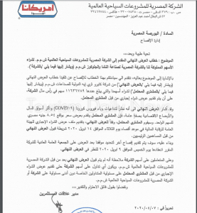 كتبت- سحر عبد الغني: كشفت شركة المصرية للمشروعات السياحية العالمية- أمريكانا مصر،عن تلقيها خطاباً من شركة كايرو ثري إيه الدولية للصناعات.