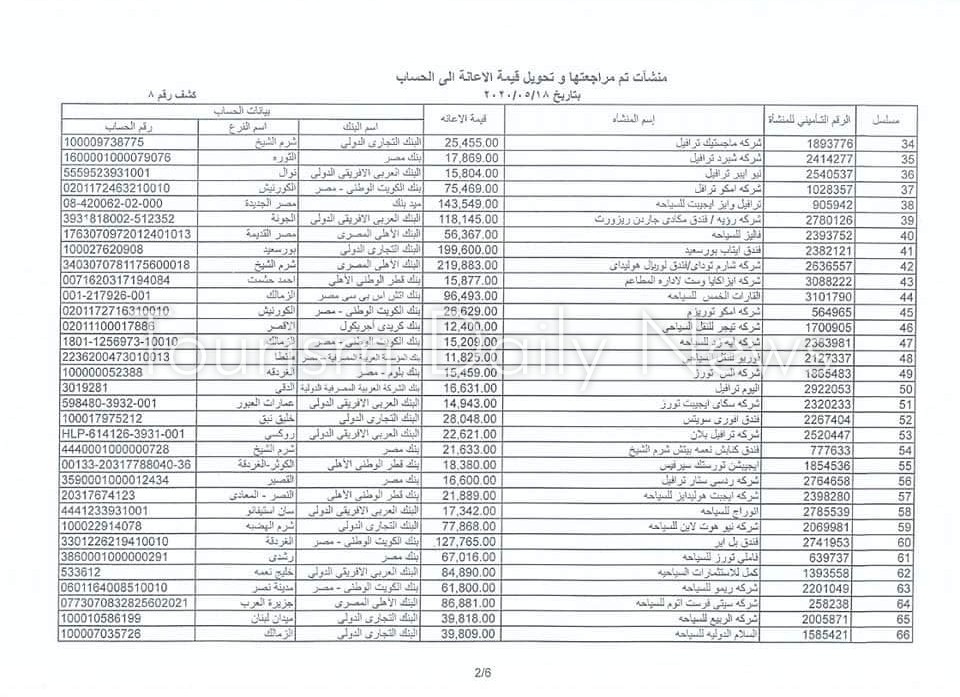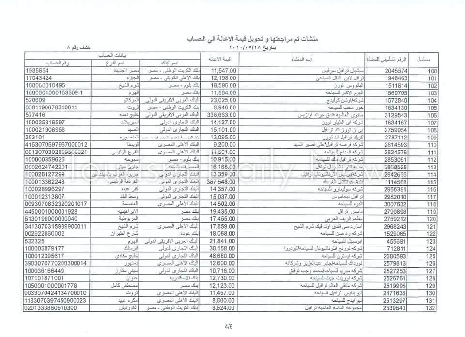 قائمة بأسماء 187 شركة ومنشأة سياحية تبدأ صرف إعانات صندوق الطوارئ.