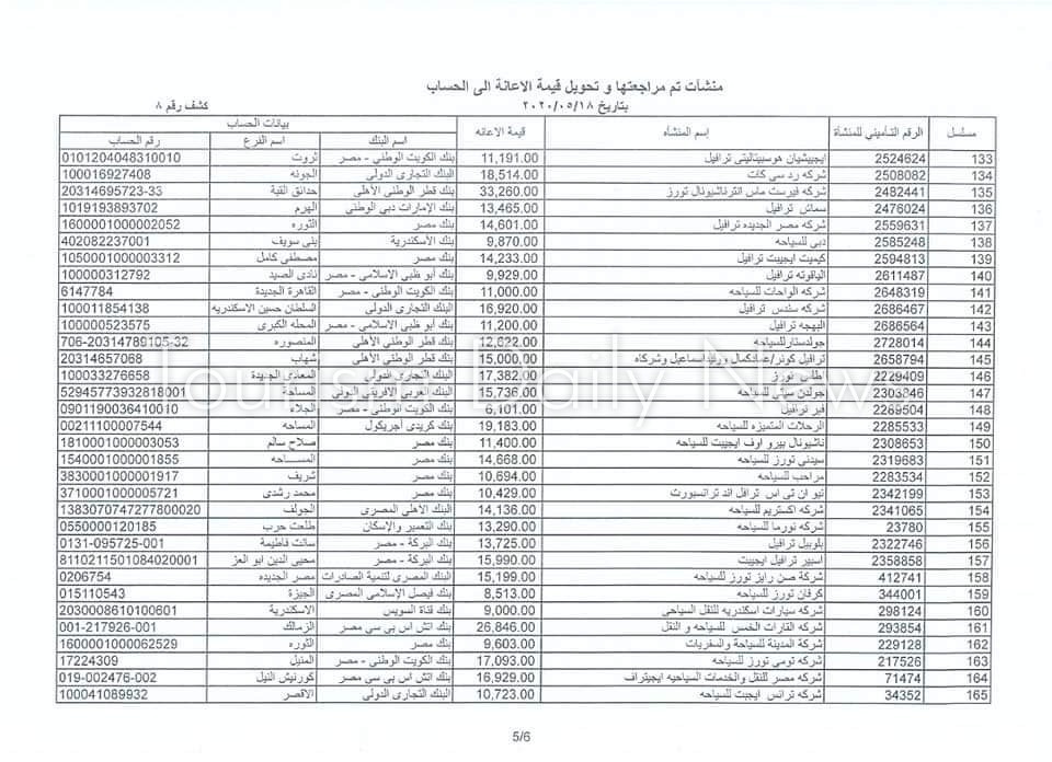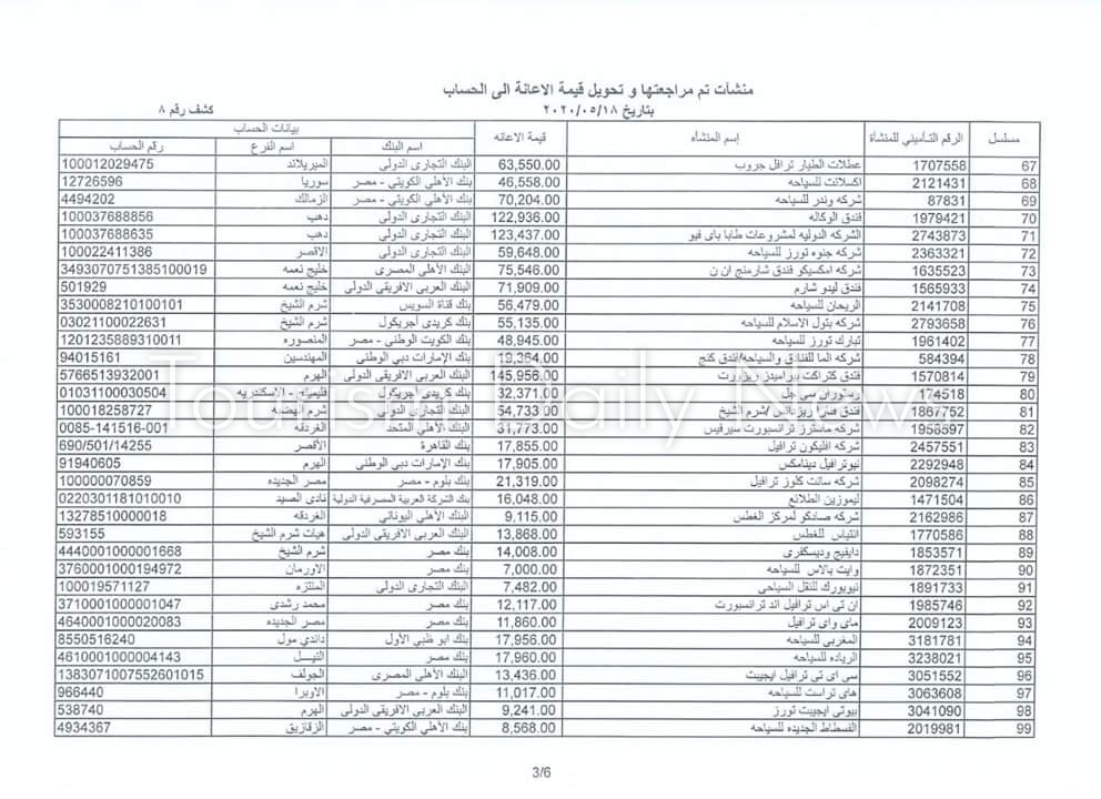 وحصلت “توريزم ديلى نيوز”، على قائمة بأسماء 187 شركة ومنشأة سياحية تبدأ صرف إعانات صندوق الطوارئ، بعد أن تم مراجعتها وتحويل قيمة الإعانة إلى حساباتها البنكية اليوم الاثنين الموافق 18 مايو.