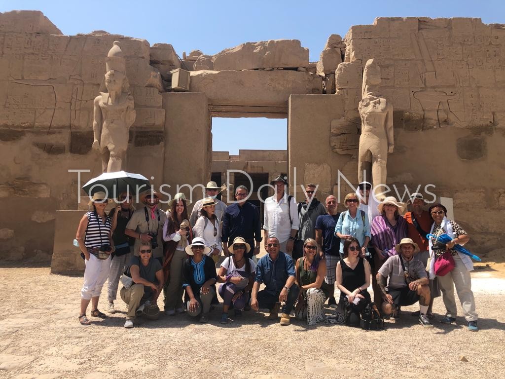 وقد حرص د. خالد العناني على التقاط صورة تجمع بين خفراء معبد الكرنك وأحد المجموعات السياحية، فالسياحة هي أفضل وسيلة للتقارب بين الشعوب.