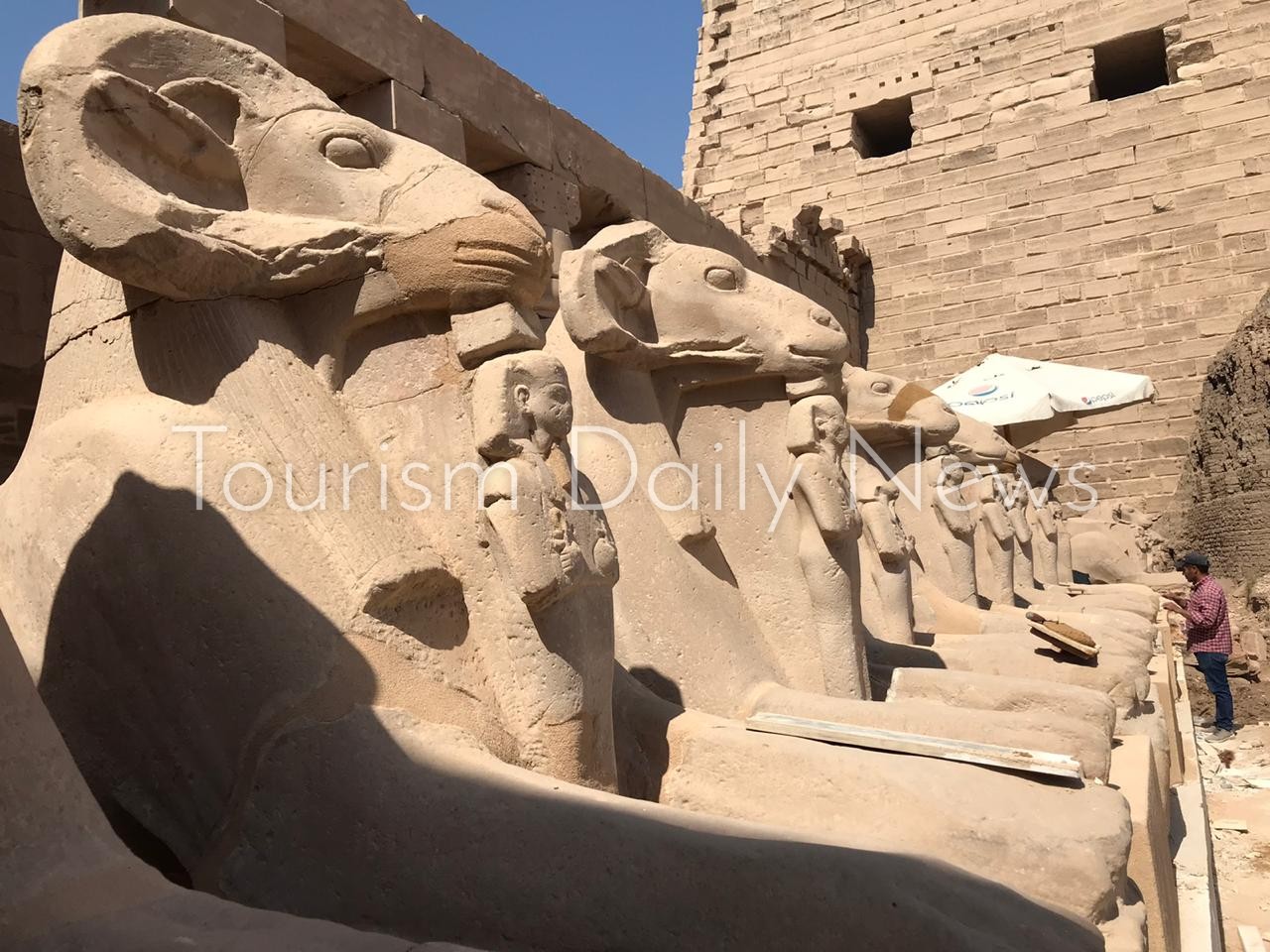ثم تفقد الوزير أعمال مشروع ترميم مجموعة تماثيل الكباش الموجودة خلف الصرح الأول بمعبد آمون رع بالكرنك، والذي بدأه المجلس الأعلى للآثار في شهر مايو الماضي بعد نقل أربعة تماثيل منها إلى القاهرة لتزين ميدان التحرير.