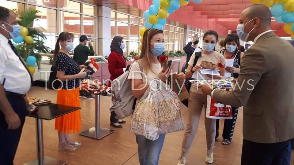 وفور الوصول تم استقبال الطائرة بتقليد رش المياه وقام فريق من العلاقات العامة بإستقبال الركاب بالورود كما تم تقديم كافة التسهيلات اللازمة لسرعة إنهاء إجراءات الوصول لهم ، فضلاً عن تطبيق الإجراءات الإحترازية والوقائية والتباعد الإجتماعي حفاظاً على سلامة وصحة المسافرين والعاملين.