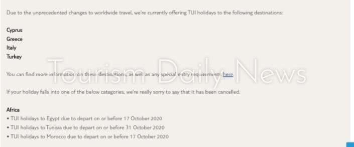 وأصدرت توى البريطانية على موقعها الإلكترونى، قائمة بالعطلات التى ألغتها بداية من سبتمبر وحتى نهاية العام، والتى من بينها مصر وإسبانيا واليونان والبرتغال وتونس والمكسيك والمغرب.