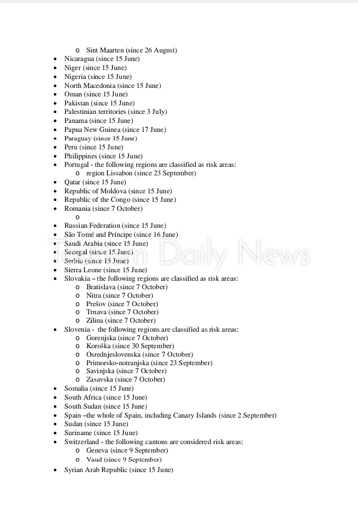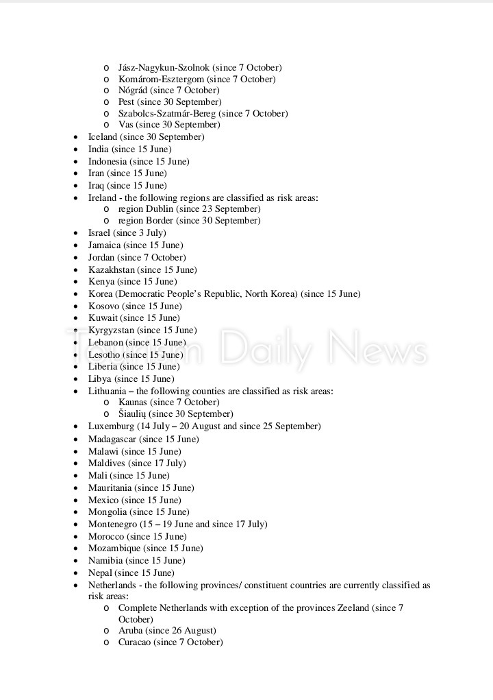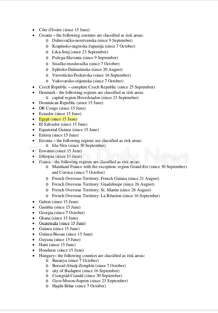 وأضيفت مناطق في دول أخرى للقائمة بما في ذلك هولندا وبلغاريا وكرواتيا وليتوانيا وسلوفاكيا وسلوفينيا والمجر.