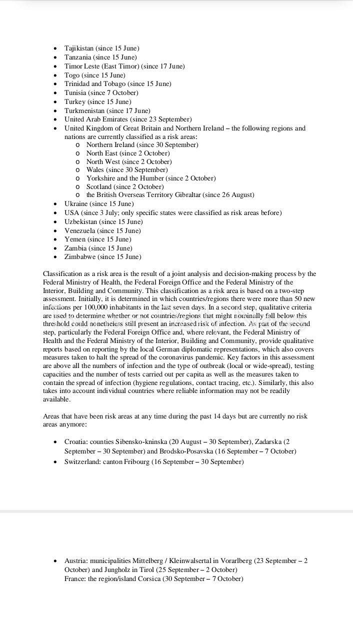 وتعتبر ألمانيا أي منطقة من مناطق الخطر عندما يتجاوز عدد حالات العدوى بكورونا فيها 50 لكل 100 ألف ساكن على مدى سبعة أيام.
