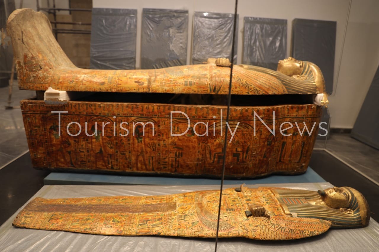 وقد تم الانتهاء من وضع المومياوات داخل الفتارين التي تم تجهيزها وتعقيمها بطريقة خاصة لحفظ المومياوات بداخلها.