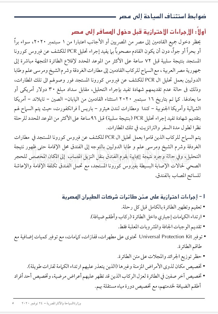 آخر تعديلات ضوابط استئناف السياحة إلى مصر: