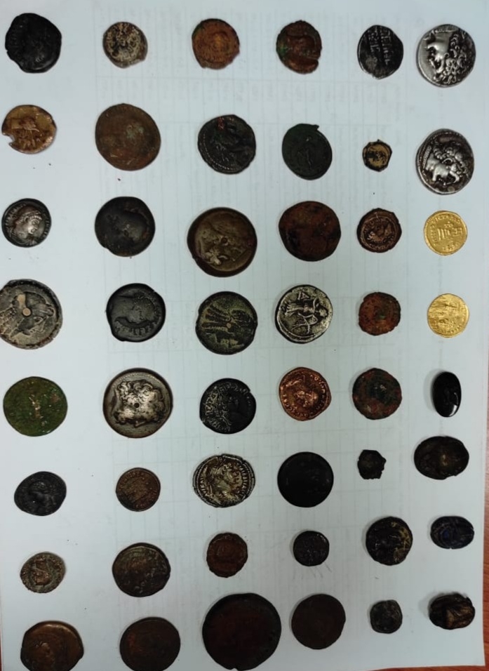 وأضافت هناء المشهور مدير عام مركز الوحدات الأثرية بمطار القاهرة الدولي أن المضبوطات تضم عملتين من الفضية من العصر البطلمى، و 80 عملة معدنية من البرونز ترجع للعصر اليونانى والرومانى، وعمليتين ذهبيتين من العصر البيزنطي، و عملة فضية من العصر الأيوبي، وثلاث جعارين صغيرة من العصور المصرية القديمة.