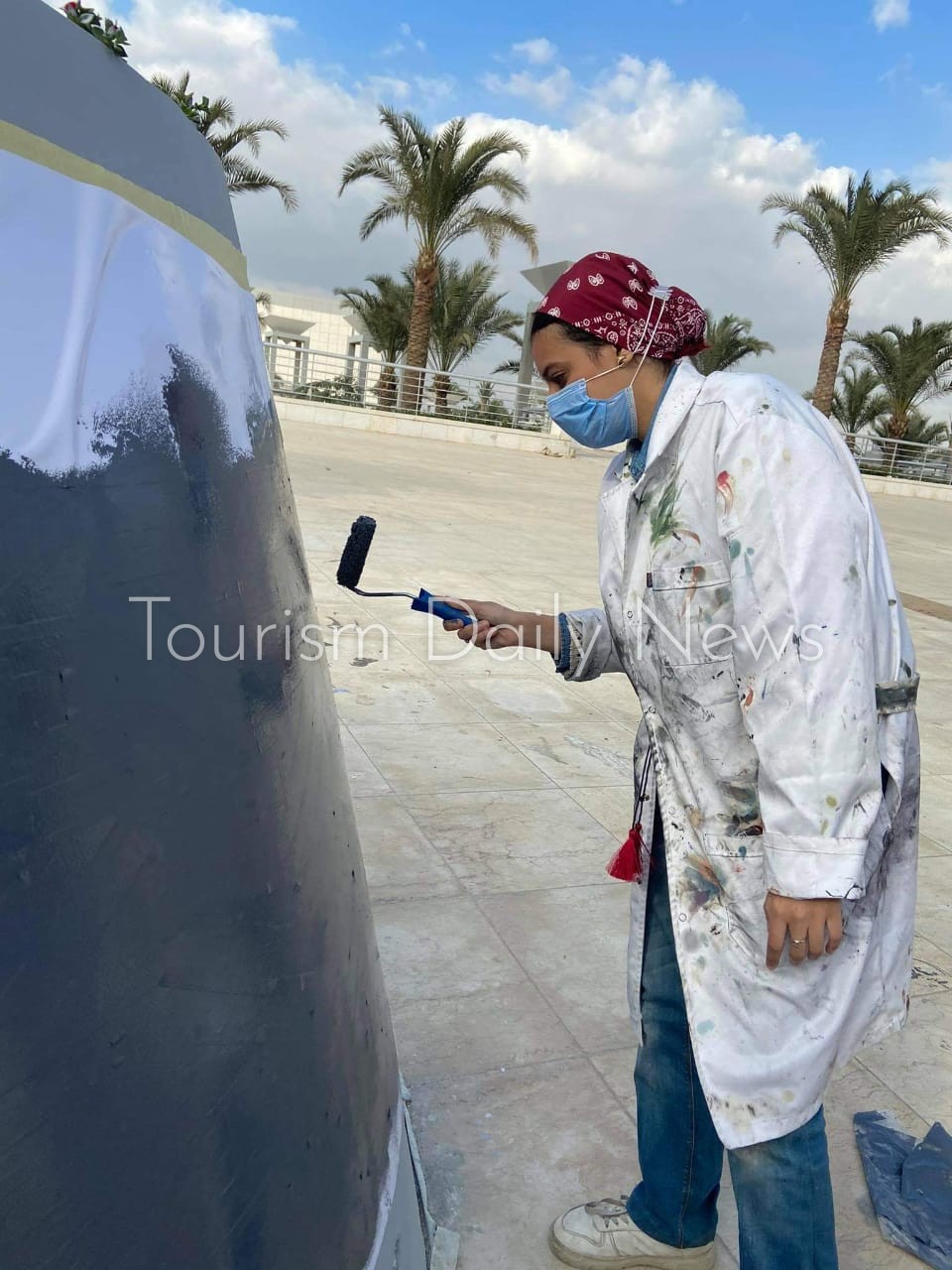 وأوضح الدكتور أحمد غنيم الرئيس التنفيذي لهيئة المتحف القومي للحضارة المصرية، أن الطلاب قاموا بتجميل أحواض النباتات برسومات تعكس مظاهر الفن في العصور التاريخية المختلفة بمصر، بإلاضافة إلى تزيين المنطقه بتركيب بعض الأعمدة الرخامية بعد نحتها بنقوش أثرية، كما تم تصميم عدد من اللوحات التي توضح محتوى المتحف وما به من كنوز أثرية تعكس الحقب المختلفة للحضارة المصرية العريقة.