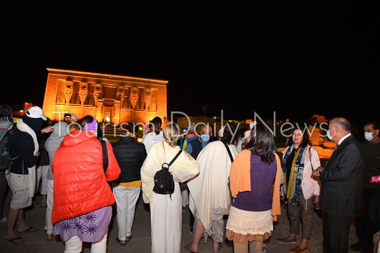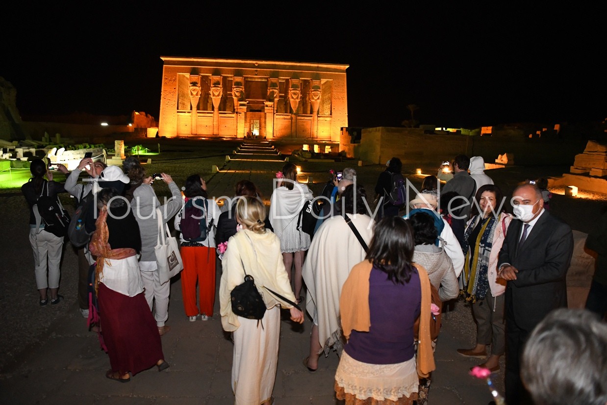 كتب _أحمد زكي : استقبل اللواء أشرف الداودي محافظ قنا فجرا فوجا سياحيا يضم 70 سائحاً من جنسيات مختلفة فى معبد دندرة وقدم لهم الورود بمعبد دندرة وذلك في إطار خطة تنشيط السياحة التي تنفذها الدولة حيث يستقبل معبد دندرة من 60 الي 100 سائح يوميا ، بحضور الاستاذ ايمن هندي مدير عام آثار قنا وعدد من القيادات التنفيذية