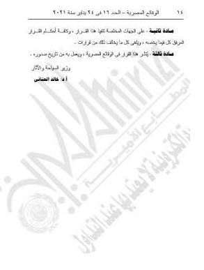 كتبت – دعاء سمير : أصدرت وزارة السياحة والآثار قرار رقم 6 لسنة 2021، الذي نص على أن يعتمد الهيكل التنظيمي الصادر به قرار رئيس الجهاز المركزي للتنظيم والإدارة رقم 1 لسنة 2021 بشأن اعتماد جدول وظائف وزارة السياحة والآثار فيما يخص الوظائف القيادية بمجموعة الوظائف التخصصية، وهذا نص القرار.