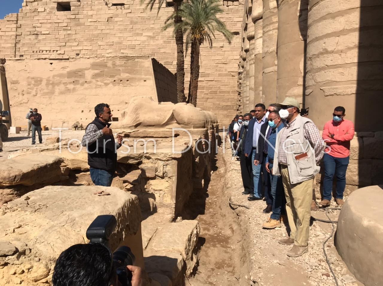 وزير السياحة يفتتح مشروع ترميم مجموعة من تماثيل الكباش داخل معابد الكرنك