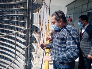 وتجول المهندس خالد عباس، ومرافقوه بمنطقة الأبراج الشاطئية والمنطقة الترفيهية، حيث تفقد نماذج عينات تشطيب الوحدات، بالأبراج الشاطئية، مشدداً على ضرورة الإسراع بمعدلات التنفيذ، والالتزام بالجداول المحددة للانتهاء من المشروعات المختلفة بمدينة العلمين الجديدة.