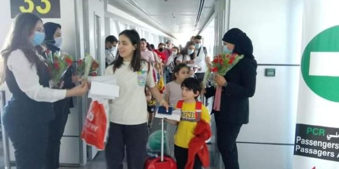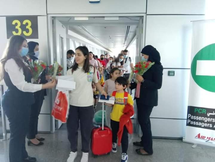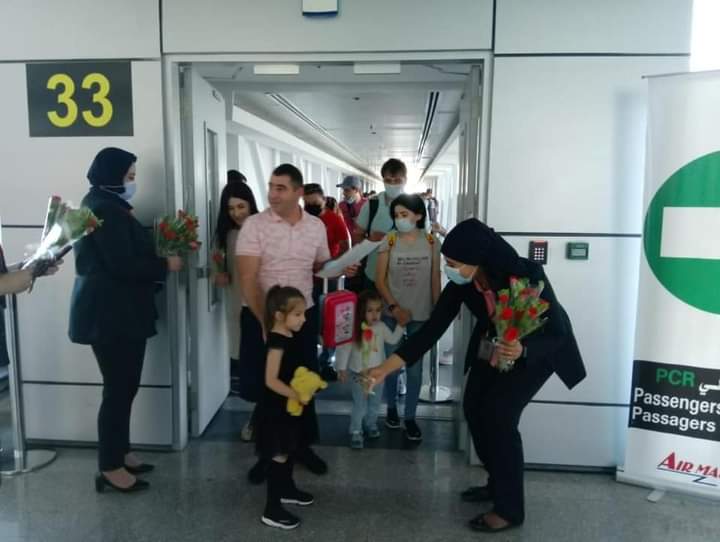 وبحسب بيان للشركة المصرية للمطارات ، قام فريق العلاقات العامة بالمطار بإستقبال الركاب بالورود و إنهاء كافة إجراءات الوصول الخاصة بهم بسهولة ويسر تام مع الإلتزام بتطبيق كافة الإجراءات الإحترازية والوقائية المتبعة بالمطارات المصرية خلال جائحة كورونا للحفاظ على صحة المسافرين.
