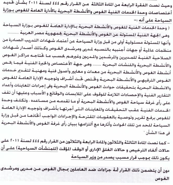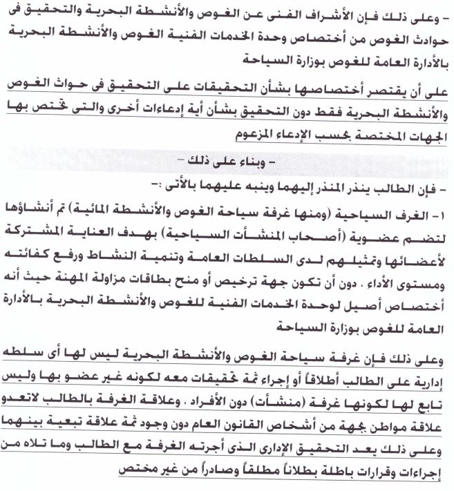 وكانت غرفة سياحة الغوص والأنشطة البحرية قد أصدرت منشور رقم 33 لسنة 2021 – تقارير الحوادث والمخالفات المُثبتة ومُخالفة اشتراطات إصدار بطاقة مزاولة المهنة وجاء فيه :
