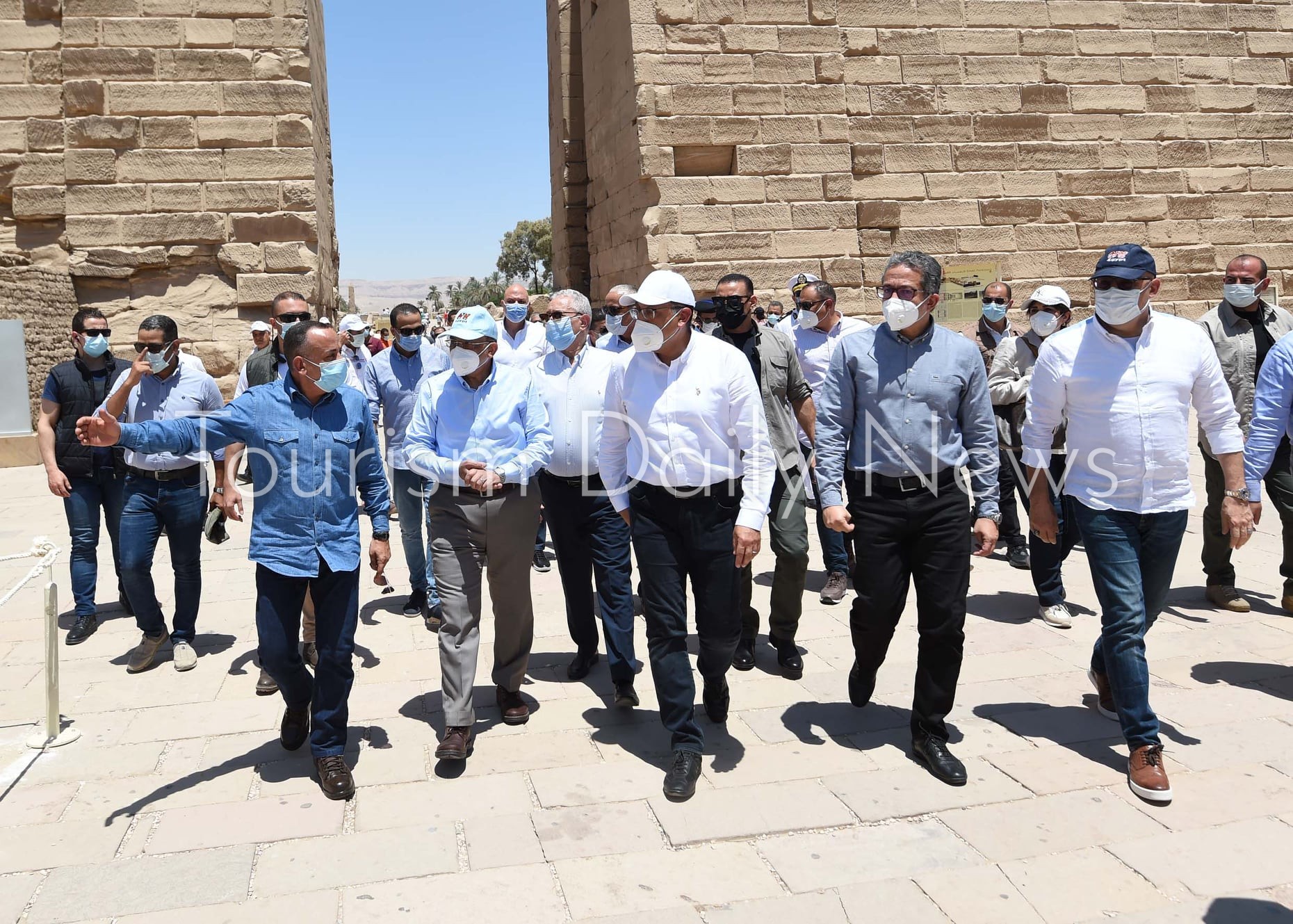 واستهل رئيس الوزراء جولته فى طريق الكباش، ومعبد الكرنك بتجديد التأكيد على استمرار جهود كافة الأجهزة المعنية فى إعادة ترميم وإحياء المواقع والمناطق الأثرية والتاريخية، حفاظاً على ما تمتلكه مصر من كنوز وآثار، تحكى تاريخها العريق عبر مختلف العصور والحضارات، مشيراً إلى أن مشروع كشف وتجهيز مسار طريق الكباش بالأقصر يُعد من أهم المشروعات الأثرية التي تقوم الدولة بتنفيذها حالياً، حيث يستهدف تحويل الأقصر إلى أكبر متحف مفتوح في العالم من خلال ربط معبد الكرنك ومعبد الأقصر ومعبد موت واطلال طبية القديمة الجاري الكشف عنها في منطقة نجع ابو عصبة مع طريق المواكب الكبرى.