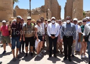 وخلال الجولة بمعبد الكرنك وتفقده لقاعة الأعمدة الكبرى بالمعبد وما يجرى بها من ترميم وإعادة إحياء لها وصولاً لما كانت عليه من هيئة توضح الرسومات والالوان الزاهية لهذه الأعمدة، حرص رئيس الوزراء على التقاط صورة تذكارية مع عدد من السائحين المتجولين بالمعبد، وفى إطار العمل على سرعة الانتهاء من أعمال الترميم والتطوير داخل المعبد، وجه بزيادة أعداد العاملين القائمين بتلك الأعمال، ورصد أى ميزانية مطلوبة من أجل سرعة الانتهاء من هذه العملية، حتي تظهر الألوان على صورتها الأولية، التى تعكس ما كان عليه المصريون القدماء من تقدم وحضارة، كما أجري رئيس الوزراء حواراً مع مشرف الفنيين والعمال القائمين علي عمليات التطوير للوقوف على الطاقة الإنتاجية لكل عامل، والمتطلبات اللازمة لسرعة الانتهاء من هذه الأعمال، وفى هذا الصدد لفت رئيس الوزراء إلى أهمية مشاركة المزيد من خريجى كليات السياحة والآثار، والاستعانة بهم فى تنفيذ عمليات التطوير والترميم داخل المواقع الأثرية.