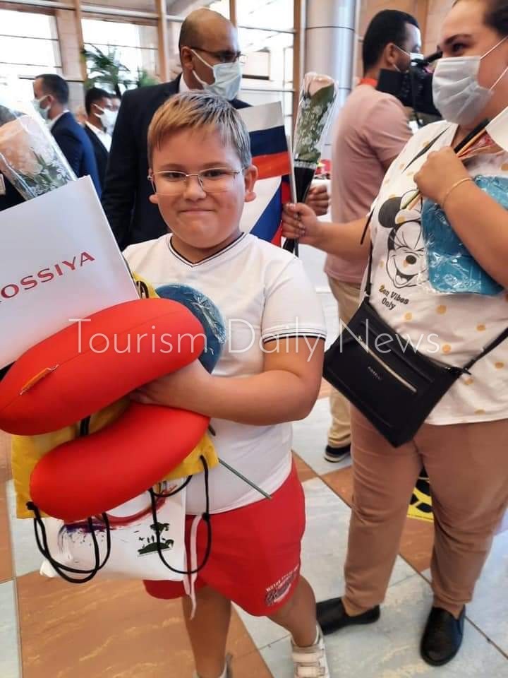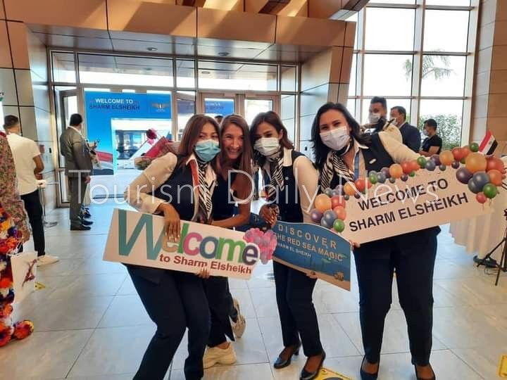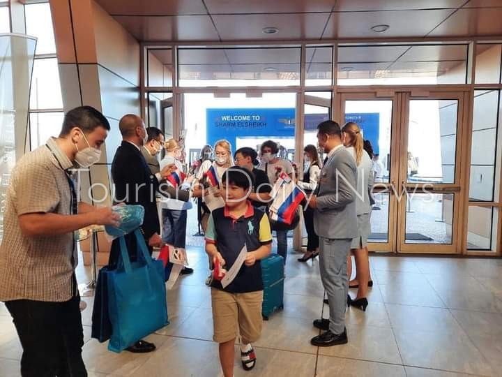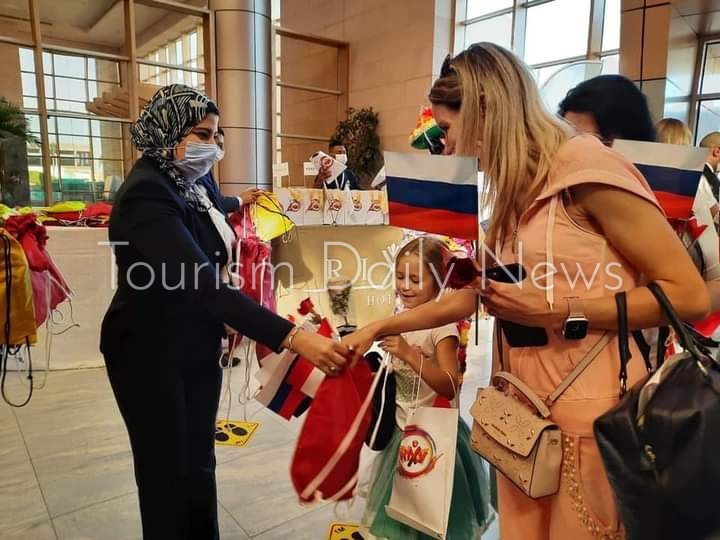 حيث تم استقبال الطائرة بتقليد رش المياة الملونة بأعلام مصر وروسيا واستقبال الركاب بالعروض الفلكلورية داخل المطار ، كما تزينت صالة الوصول بأعلام البلدين ورسائل الحفاوة والترحيب بضيوف مصر فى أرض السلام وقام فريق العلاقات العامة بالمطار بإستقبال الركاب وتقديم الورود والشيكولاته وبعض الهدايا التذكارية ، مع اتخاذ كافة الإجراءات الاحترازية والوقائية بالمطار.