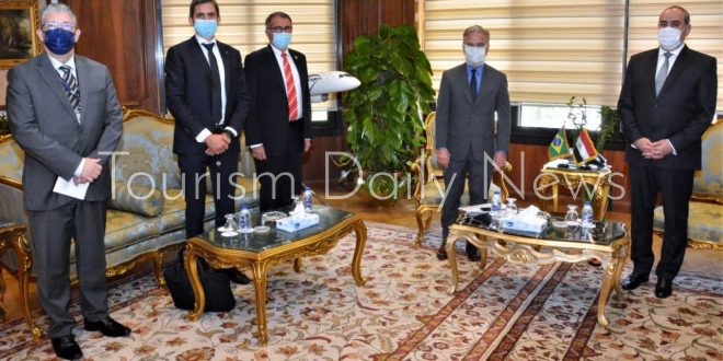 كتبت – هويدا محمود : التقى الطيار محمد منار وزير الطيران المدنى أنطونيو باتريوتا سفير دولة البرازيل لدى جمهورية مصر العربية بمقر وزارة الطيران لبحث العلاقات الثنائية بين مصر والبرازيل فى مجال النقل الجوى ، بحضور الطيار منتصر مناع نائب وزير الطيران.