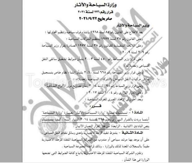 كتبت – مروة السيد : نشرت الجريدة الرسمية قرار الدكتور خالد العناني، وزير السياحة والآثار، رقم 236 لسنة 2021، بشأن استبدال عبارة وزارة السياحة والآثار، بـ وزارة السياحة، والتي وردت بالقرار الوزاري رقم 298 لسنة 2014.