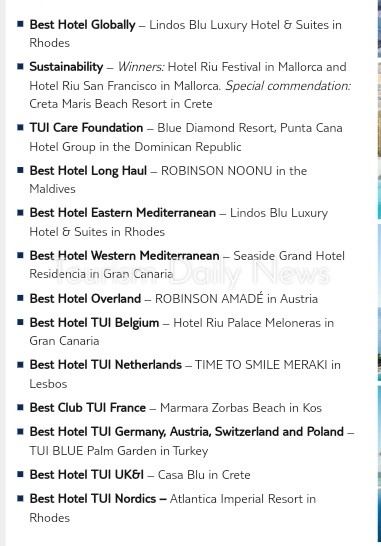 كتب – قاسم كمال: أعلنت مجموعة توي العالمية عن أسماء الفائزين بجوائز TUI Global Hotel Awards لعام 2022 ، تقديراً للفنادق التي حصلت على درجات عالية من الرضا من عملائها وأظهرت التزامها بالاستدامة.