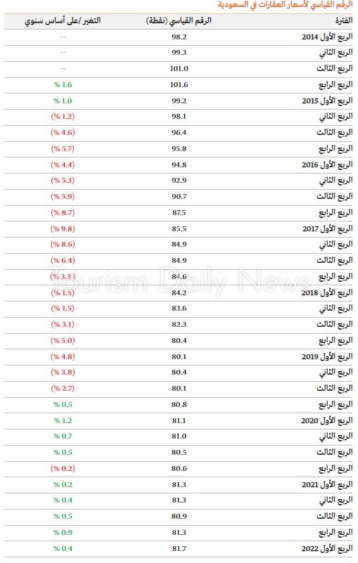 وكانت هيئة الإحصاء قد حددت عام 2014 كسنة أساس (100 نقطة) لاحتساب الرقم القياسي لأسعار العقارات في السعودية، والجدول التالي يوضح التغير في الرقم القياسي لأسعار العقارات في السعودية: