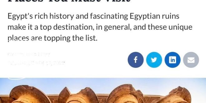 وفي سياق متصل، وتحت عنوان “المقصد السياحى المصرى.. عشرة أماكن فريدة يجب عليك زيارتها” أبرز موقع The Travel السياحى المتخصص عشرة أماكن سياحية متميزة في مصر، حيث أوضح التقرير أن مصر تعد واحدة من أكثر الدول الأفريقية التي تحظى بنسبة زيارة كبيرة حيث أنها دولة ذات تاريخ عريق مما يجعلها ذات مكانة متميزة كما أنه لا يزال بها الكثير الذي يمكن اكتشافه بالإضافة إلى أنها تمتلك العديد من الأنماط السياحية الرائعة التي يمكن الاستمتاع بها.