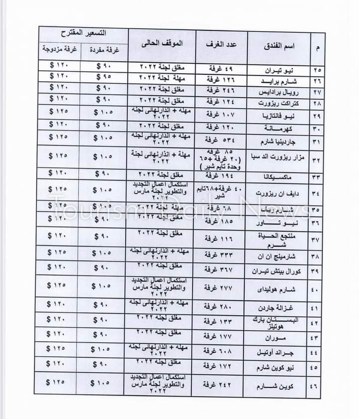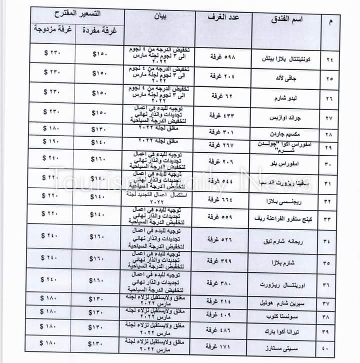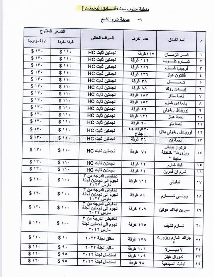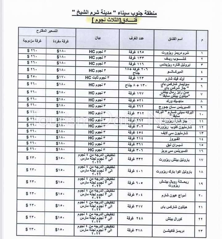وأعلنت الغرفة فى منشورا لها تم تعميمه عن قائمة أسعار الفنادق ” 2-3 نجوم ” بالدولار الأمريكي أثناء فترة انعقاد مؤتمر المناخ cop 27 والتى حددتها وزارة السياحة والآثار طبقا للتصنيف العالمي.
