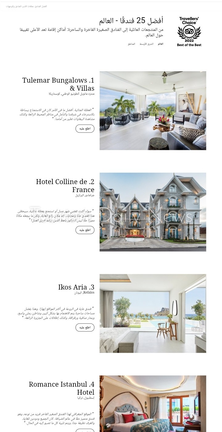 قائمة أفضل 25 فندقاً في العالم لعام 2022.