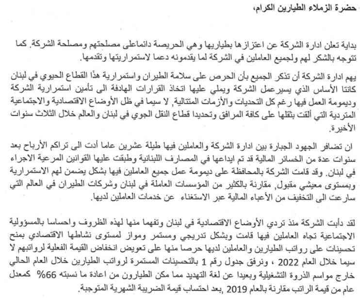 أصدر رئيس العمليات في شركة "طيران الشرق الأوسط" الكابتن أحمد منصور بياناً حول الأوضاع المستجدة في الشركة. وجاء في البيان الآتي: