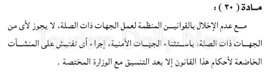 وأضاف المصرى أن القانون رقم 8 لسنة 2022 فى مادته رقم 30 قد حظر على الجهات ذات الصلة إجراء أي تفتيش سواء كان دوري أو مفاجئ على المنشآت الخاضعة لأحكام هذا القانون إلا بعد التنسيق مع الوزارة المختصة وهى وزارة السياحة والآثار.